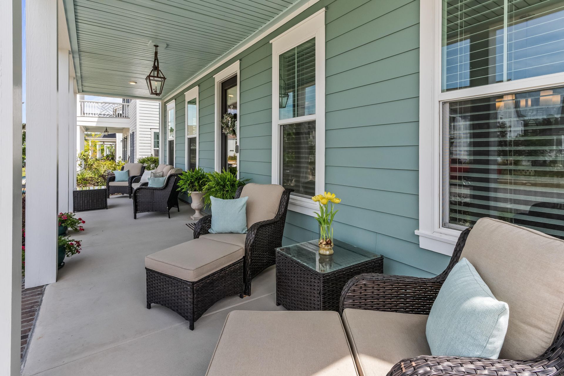 The signature two-story double front porches and charming gas lantern set a classic Lowcountry tone from the moment you arrive at 216 Symphony Ave. This stunning 2022 Pulte-built Laurel floorplan offers 3 bedrooms, 2.5 baths, and 2,584 square feet in the heart of Nexton's Midtown. Lovely brick front stairs welcome you inside, where smooth 9-foot ceilings, elegant interior trim, and durable luxury vinyl flooring flow throughout the main level, bathed in natural light from an abundance of windows and generously sized rooms.The gourmet kitchen is a true standout. Quartz countertops, 36 flat panel birch cabinets with pull-out shelving and soft-close doors and drawers, under-cabinet lighting, and a classic farmhouse sink set the stage. A natural gas cooktop and a full suite of Energy Star Whirlpool appliances make it as functional as it is beautiful. A central prep island anchors the space, while the peninsula with counter-height bar seating opens to the family room, keeping the cook connected to the conversation. Completing the main level are a study with double French doors, a spacious formal dining room with gorgeous trim work, a laundry room, and a powder bath.The owner's suite is privately positioned at the rear of the main level - a quiet escape from the bustle of the day. The primary bath is a true retreat, with a freestanding soaking tub, walk-in shower with frameless glass enclosure, double vanity with marble countertop, a separate water closet, and a large walk-in closet.Upstairs, the two secondary bedrooms are served by a well-appointed full bath with a double sink vanity and beautiful tile work. The wide hallway lends an airy, open feel to the upper level and the full-length upper front porch offers a lovely perch to take in the neighborhood and enjoy the Lowcountry breeze.Step outside to an expansive screened porch that leads to an adjacent patio with a natural gas line for grilling, perfect for Lowcountry evenings. The detached two-car garage offers great extra storage, while Hardie plank fiber cement siding, a 30-year architectural shingle roof, full-yard irrigation with 9 zones, gutters/downspouts, and a tankless Rinnai gas water heater round out a home that's as practical as it is beautiful.The location within Nexton is hard to beat. Just one block from the Midtown Club's resort-style pool/lagoon with lap lanes, fire pit, workout room and pavilion - and a short stroll from the future Midtown Middle School opening in 2026 and Nexton Elementary. Beyond the amenities, Nexton delivers an unmatched lifestyle with miles of trails, a dog park, gigabit fiber internet, and a bustling town center with Publix, Harris Teeter, Hall's Chophouse, and much more all within the community. The Midtown entrance features a traffic signal for easy in-and-out access, and with I-26 less than a mile away, you're just 5 minutes from Downtown Summerville, 25 minutes from Downtown Charleston, and about 35 minutes from the beach.